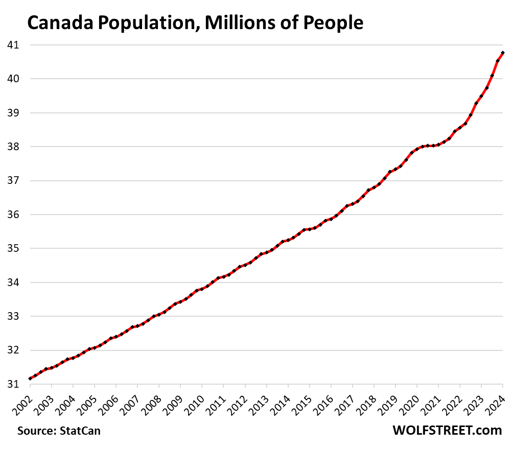 Research has indicated that significant societal transformations can occur when the foreign-born share of the population rises above 10%. In Canada, the 2021 census documented 8.36 million people as either permanent immigrants or non-permanent residents. That number was 23% of the population. As you can see in the graph above, population growth has accelerated since 2021, with nearly 100% of that growth from immigration. Some quick math demonstrates that the foreign-born population is now around 25%. There will be consequences, and not all of them will be wanted.